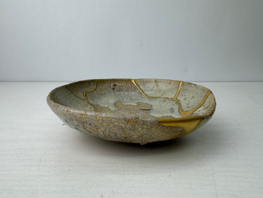 Y9254 CHAWAN Karatsu-ware flat Sake cup sakazuki kintsugi Japan antique kitchen