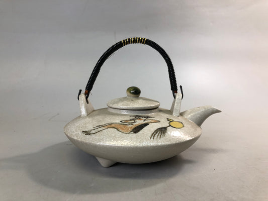 Y7590 CHOUSHI Sake pot cup set ceramic Kappa river imp painting Japan antique