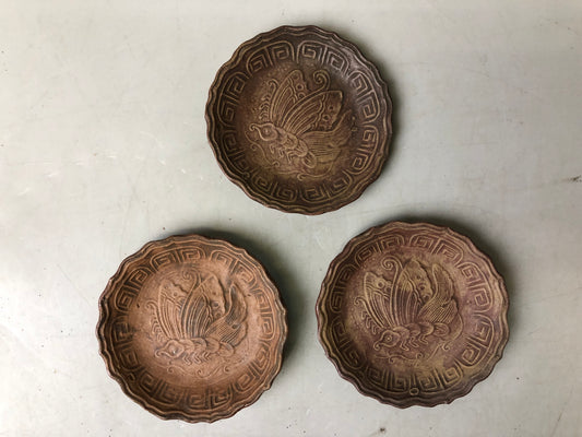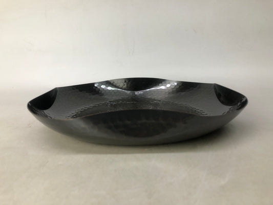 Y8357 DISH embossed hammered copper confectionery plate signed box Japan antique