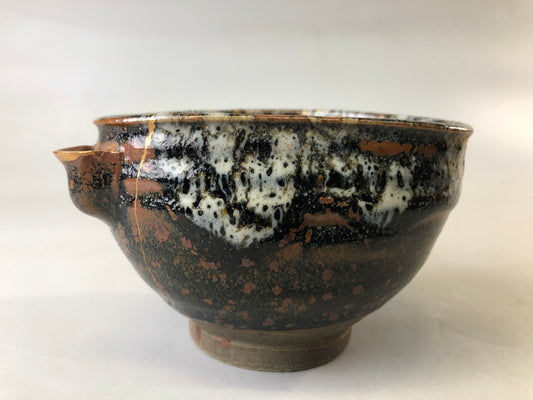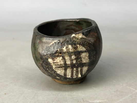 Y8355 CHAWAN Seto-ware sake cup legs Black lacquer repair kintsugi Japan antique