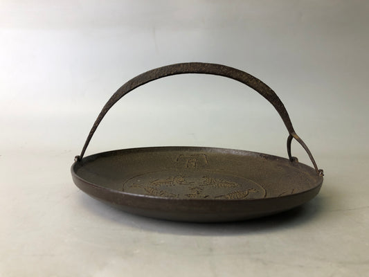 Y7754 DISH Iron plate handle signed box Japan antique tableware kitchen food