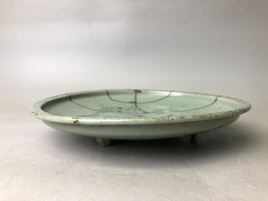 Y7899 DISH Celadon 3-foot plate kintsugi box Japan antique tableware kitchen