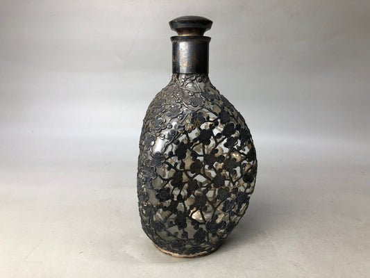 Y7993 DECANTER Silver pot jar container cherry blossom pattern Japan antique