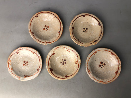 Y8078 DISH Shino-ware serving plate set of 5 signed box Japan antique tableware