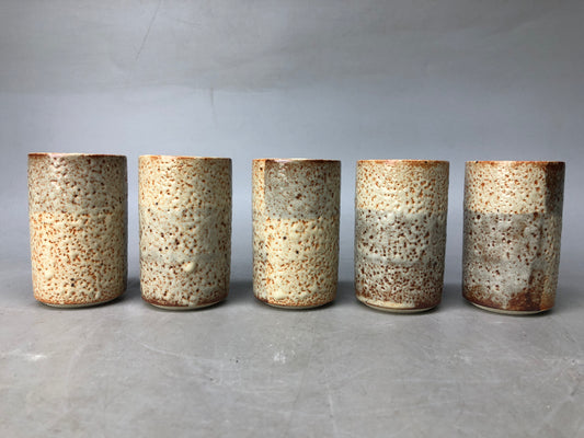 Y8098 YUNOMI Shino-ware cup set of 5 signed box Japan antique tea ceremony bowl