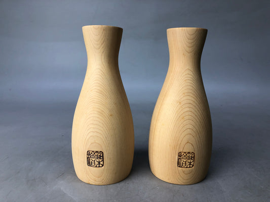 Y8306 CHOUSHI wooden Sake bottle cup set Hinoki Japanese cypress Japan antique