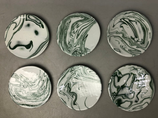 Y8279 DISH Oribe-ware small plate set of 5 signed Japan antique tableware