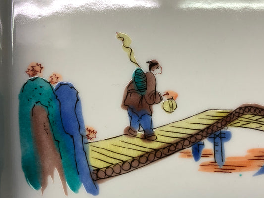 Y8408 DISH Kutani-ware set of 5 signed box color picture Japan antique tableware