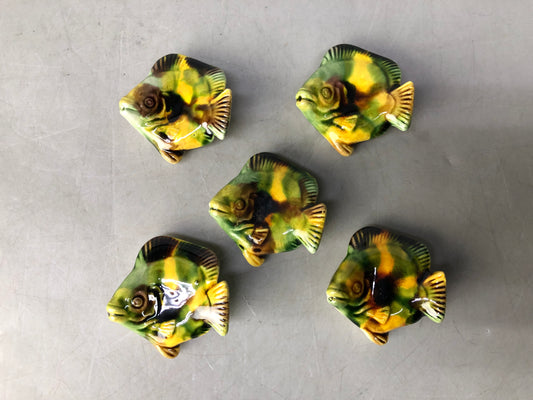 Y8412 OKIMONO Chopstick rest set of 5 Fish signed box China antique collectible