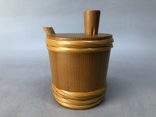 Y8423 CRUET Barrel-shaped Soy sauce dispenser wooden Magewappa Japan antique