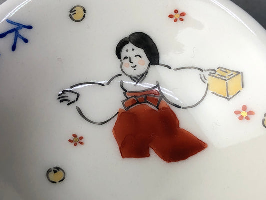 Y7773 DISH Seto-ware small plate set of 5 signed box Japan antique tableware