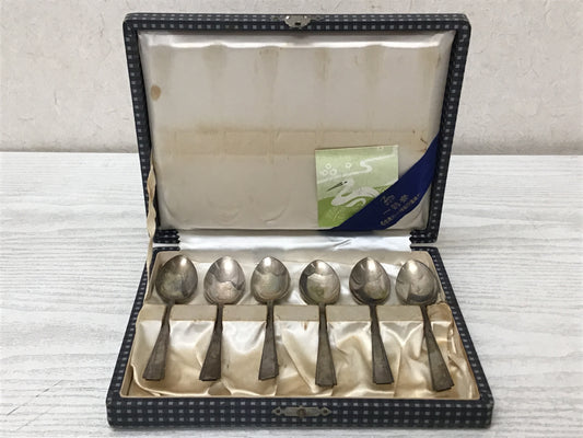 Y2710 CUTLERY Silver Spoon Set of 6 box Japanese antique vintage food tableware
