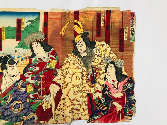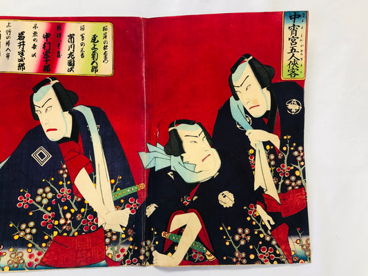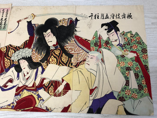 Y5054 WOODBLOCK PRINT Kunichika triptych actor Japan Ukiyoe art antique interior