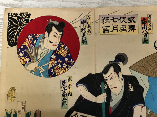 Y5051 WOODBLOCK PRINT Kunichika triptych actor Japan Ukiyoe art antique interior