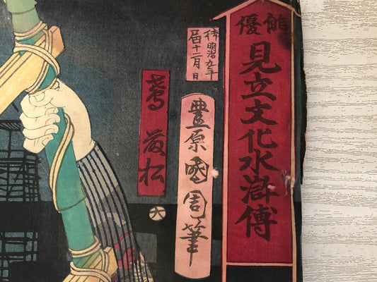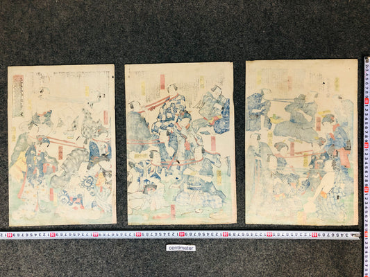 Y3631 WOODBLOCK PRINT Kunichika triptych Outlaws of the Marsh Japan Ukiyoe art