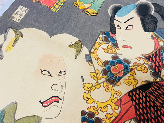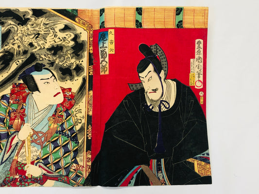 Y5055 WOODBLOCK PRINT Kunichika triptych actor Japan Ukiyoe art antique interior