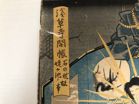 Y3643 WOODBLOCK PRINT Kunichika Apparition ghost Japan Ukiyoe vintage art