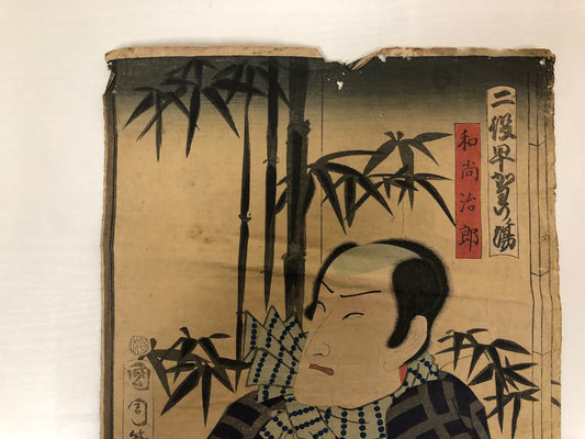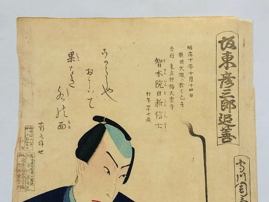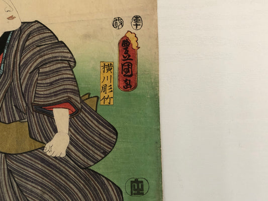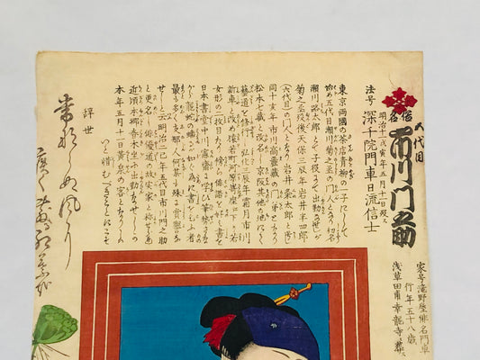 Y3638 WOODBLOCK PRINT Kunichika actor Japan Ukiyoe picture vintage art antique