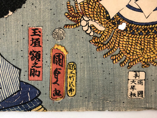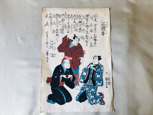 Y4294 WOODBLOCK PRINT Kuniyoshi Sangokuken game Japan Ukiyoe art antique vintage