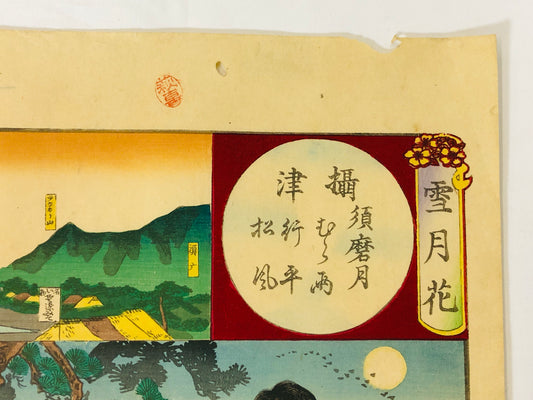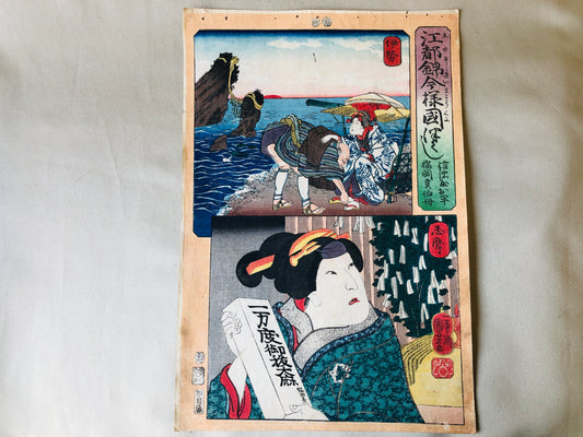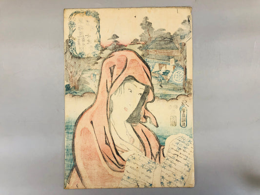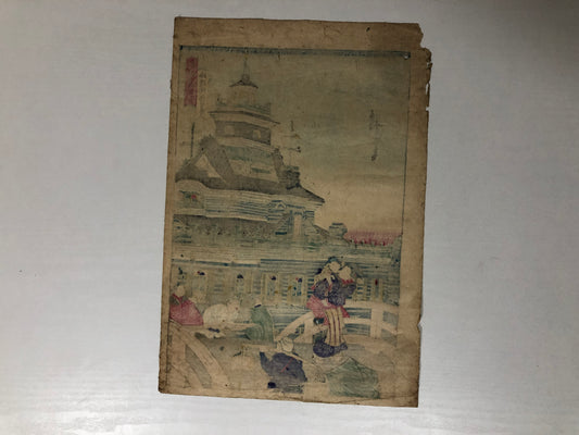 Y4297 WOODBLOCK PRINT Toyokuni person landscape Japan Ukiyoe art antique vintage