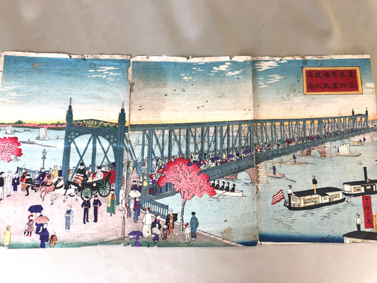 Y4194 WOODBLOCK PRINT Tankei Tokyo famous spots triptych Japan Ukiyoe antique