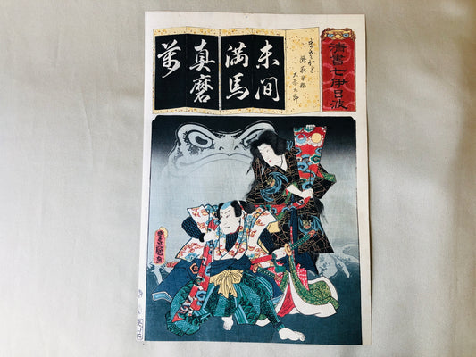 Y4292 WOODBLOCK PRINT Toyokuni frog actor Japan Ukiyoe art antique vintage decor
