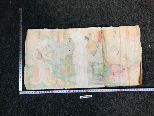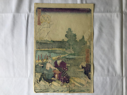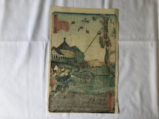 Y4291 WOODBLOCK PRINT Kuniyoshi people landscape Japan Ukiyoe art antique