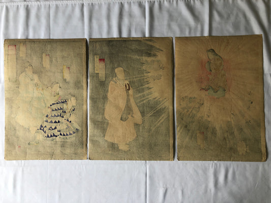 Y3203 WOODBLOCK PRINT Chikanobu actor triptych Japan Ukiyoe vintage art antique