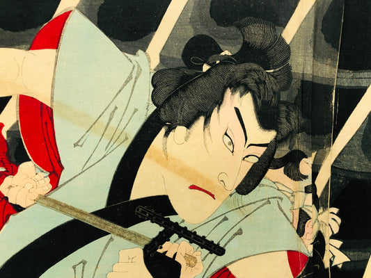 Y4010 WOODBLOCK PRINT Kunichika Kabuki actor Japan Ukiyoe art interior antique