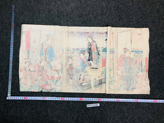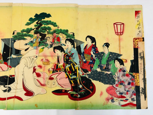 Y4298 WOODBLOCK PRINT Chikanobu triptych kimono beauty Japan Ukiyoe art antique
