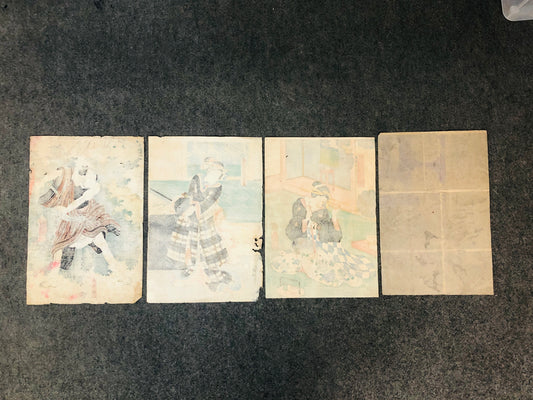 Y5509 WOODBLOCK PRINT Various set of 4 actor beauty Japan Ukiyoe antique art