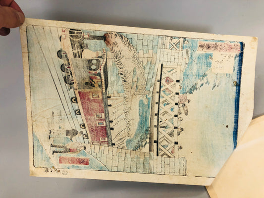 Y4015 WOODBLOCK PRINT Yoshitora modernization kaiunbashi Japan Ukiyoe antique