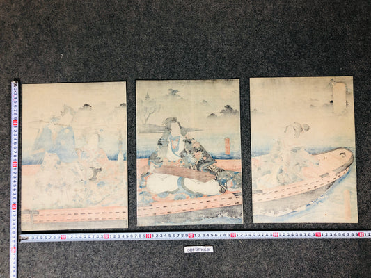 Y5948 WOODBLOCK PRINT Yoshiiku triptych good bad guys Japan Ukiyoe antique art