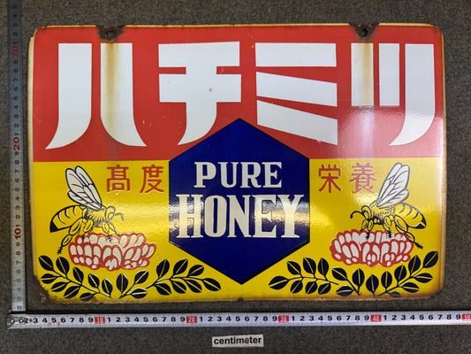 Y9747 SIGNBOARD Enamel sign Honey Showa retro Japan antique wall decor interior