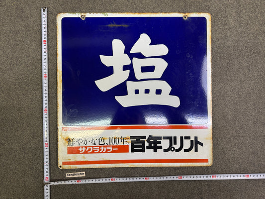 Y10068 SIGNBOARD Enamel sign Salt Japan antique wall interior shop store decor