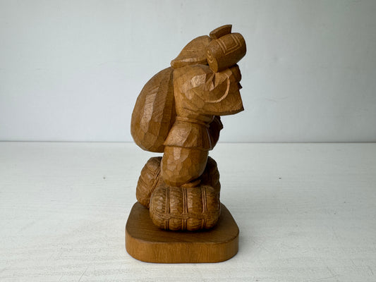 Y9803 STATUE wood carving Daikoku figurine signed Japan antique interior decor