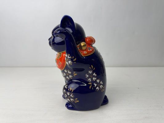 Y9871 OKIMONO ceramic Maneki-neko figurine blue signed Japan antique interior