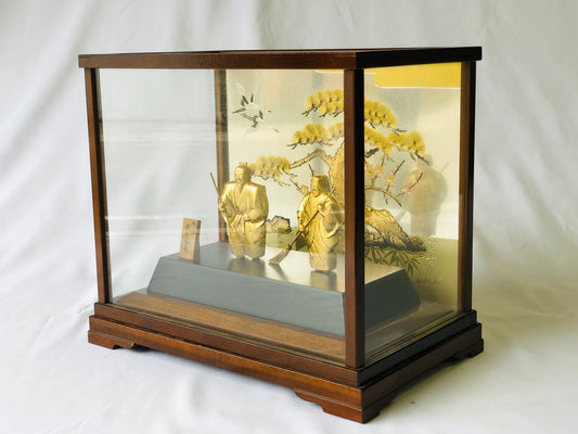 Y6113 [VIDEO] OKIMONO Silver old couple figurine glass case Japan antique interior