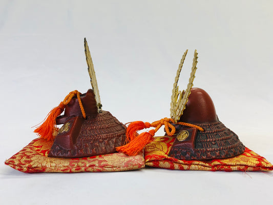 Y4856 OKIMONO small samurai kabuto set of 2 Japan antique figure interior decor