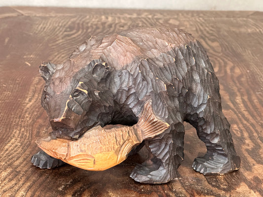 Y5067 OKIMONO wood carving Bear figure figurine Japan antique interior decor