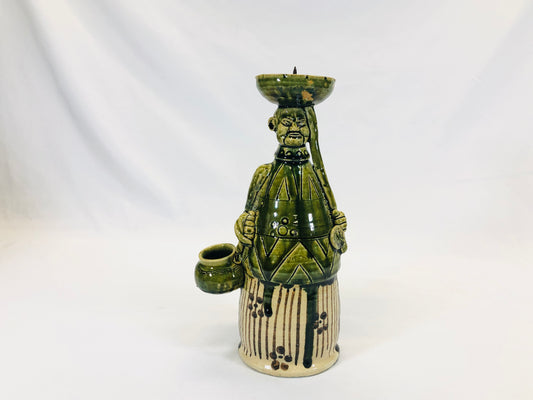 Y5208 STATUE Oribe-ware candlestick southern barbarian box Japan vintage antique