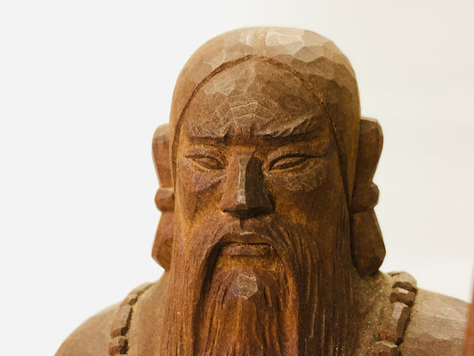Y5270 STATUE wood carving Emperor Jimmu figure signed box Japan vintage antique