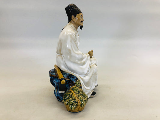 Y5644 STATUE Literati man figure figurine signed China antique interior pottery