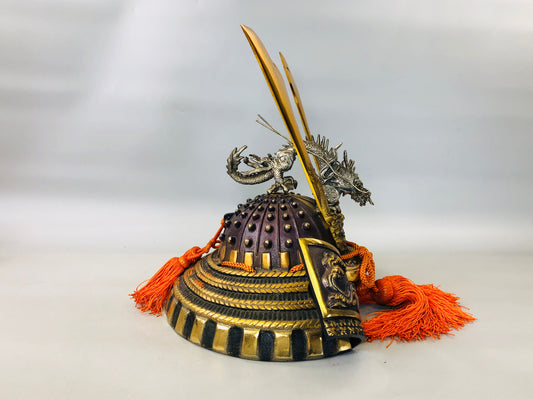Y5851 OKIMONO Metal kabuto helmet figurine dragon decoration Japan antique decor
