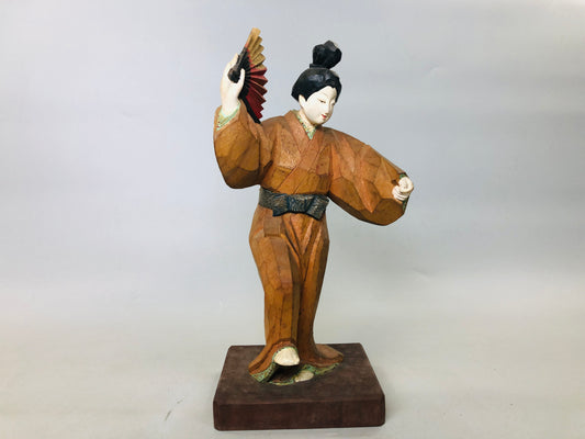 Y5885 STATUE wood carving colored dancing figure signed box Japan antique decor