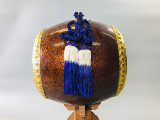 Y5915 OKIMONO Drum figure gold coating wooden stand Japan antique interior decor