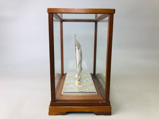 Y4752 OKIMONO Sterling Silver Yacht glass case Japan antique figure interior