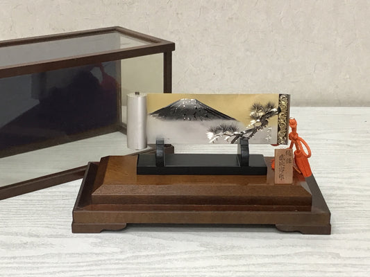 Y2677 OKIMONO Sterling Silver Scroll Mt.Fuji Pine glass case Japan antique decor