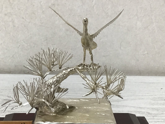 Y2678 OKIMONO Sterling Silver Pine Hawk glass case Japan antique decor interior