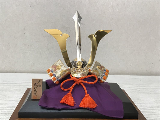 Y3849 OKIMONO May decoration Ornamental Kabuto black box signed Japan interior
